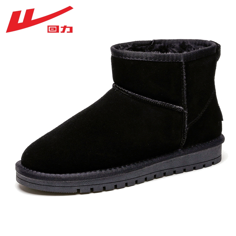 回力君祥专卖店回力雪地靴男年新款冬季东北棉鞋加绒保暖皮毛一体防水面包鞋
